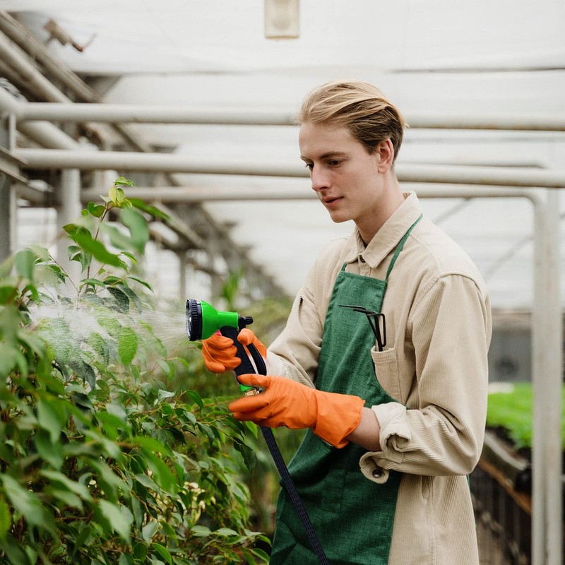 - Resistente y fiable: es una boquilla de pulverización para manguera con gran resistencia. Es importante que el pulverizador de manguera de jardín es resistente. La boquilla de manguera de agua ofrece un potente flujo de agua, y sentirás que es resistente en tu mano. La boquilla de pulverización de manguera de jardín funciona bien incluso con la baja presión de agua en el patio y el patio. Puedes seleccionar entre niebla fina a salida de ducha pesada para tus necesidades.