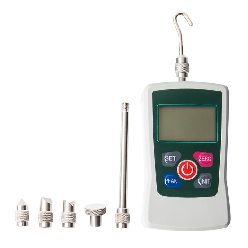 - Digital force gauge measurement range for both compression pull: 1.5 - 300N Power Supply: 2 x 1.5V AAA batteries (not included)
