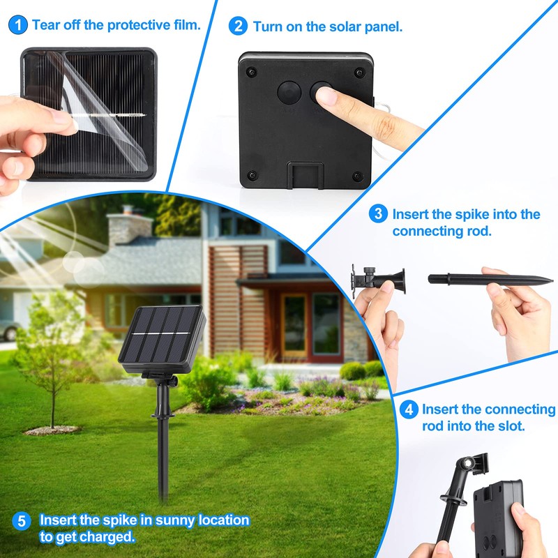 - Super Easy to Install: You surely will enjoy the ease of putting on the string lights for the highly flexible silver wire can be easily bent into any shapes you want and wrapped around trees, fences or any other objects. The solar panels can be either mounted on the wall or plugged into the grass to get sunlight exposure. Considerably all necessary mounting accessories are included in the package for instant use.