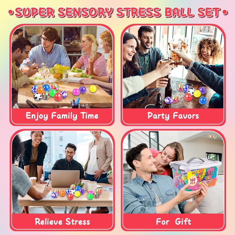 BESNEL 160 Pack Stress Balls for Adults, Bulk Squishy Ball, Sensory Stress Balls Set, Anti-Anxiety and Fidget Balls to Relax, Prize Box, Party Favors, Birthday Gifts, Goodie Bag Stuffers