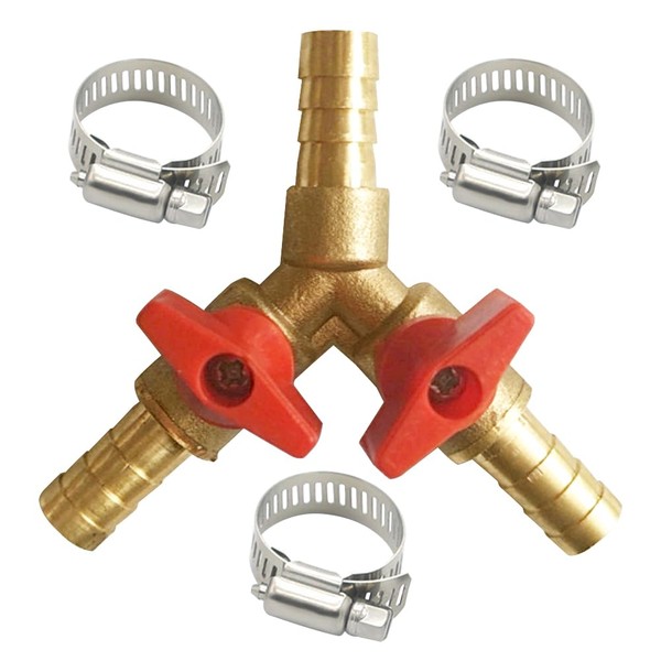 BesNPT 5/16" Hose Barb valve, Brass 3 Way Shut Off Valve Y Shaped 2 Switch Ball Valve