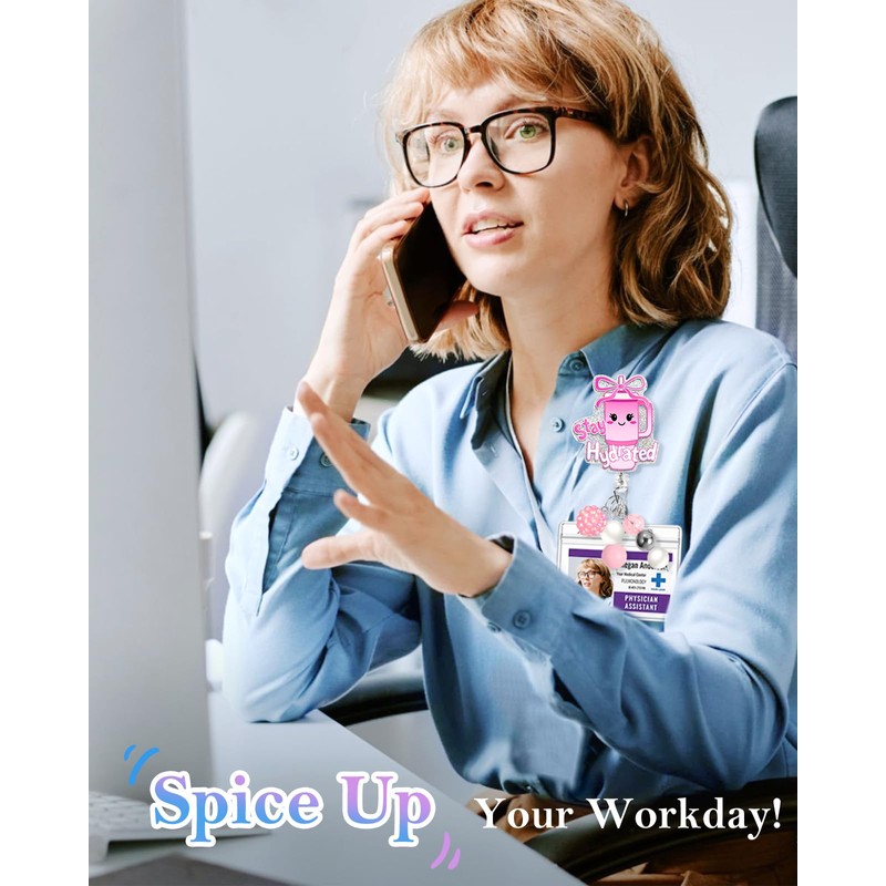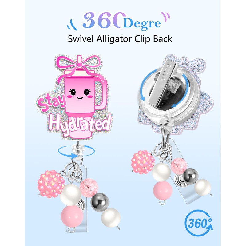 Besoar Nurse Badge Reel Retractable - Cute Pink Cup Badge Reel Nursing, Beadable Badge Holder with Alligator Clip, Office Medical Worker Pediatric Student Nurse ID Badge Clip Accessories Gifts