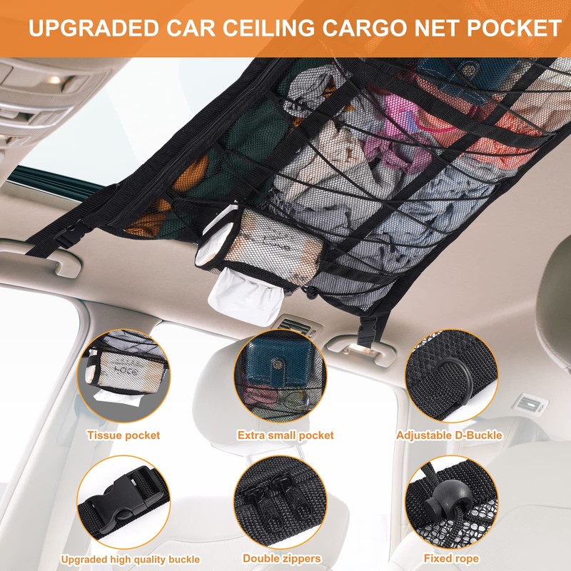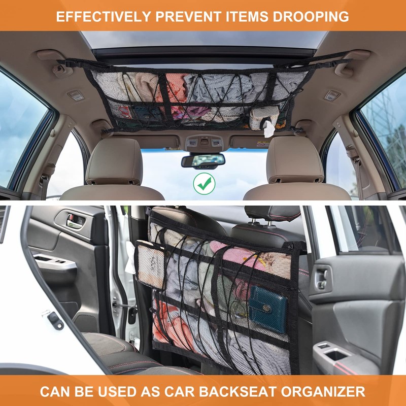 - Large Capacity & Space-Saving: The 31.5" x 21.6" ceiling storage net offers ample space for travel essentials, while the foldable design ensures easy storage when not in use