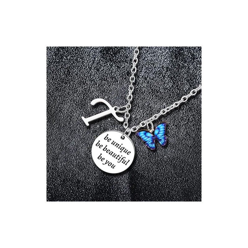 BESPMOSP Necklace Gifts for Women Girls Blue Butterfly Pendant Necklace Letter A-Z Necklace Butterflies Gifts Encouragement Initial Necklace Inspirational Necklace Jewellery Gifts (Letter T Necklace)