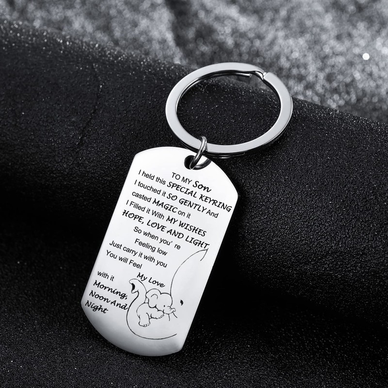 - 💕Nice Keychain: High quality polishing engraved “To My Son I Held This Special Keyring I Touched it So Gently And Casted Magic On it I Filled With My Wishes Hope Love Light So When You're Feeling Low Just Carry it With You You Will Feel My Love Within it Morning Noon And Night.”