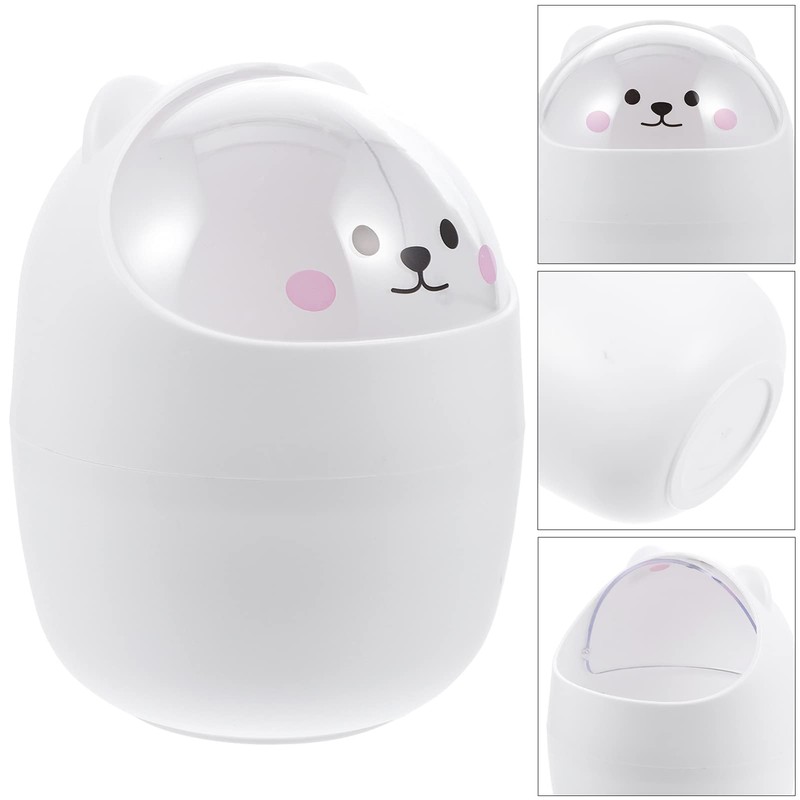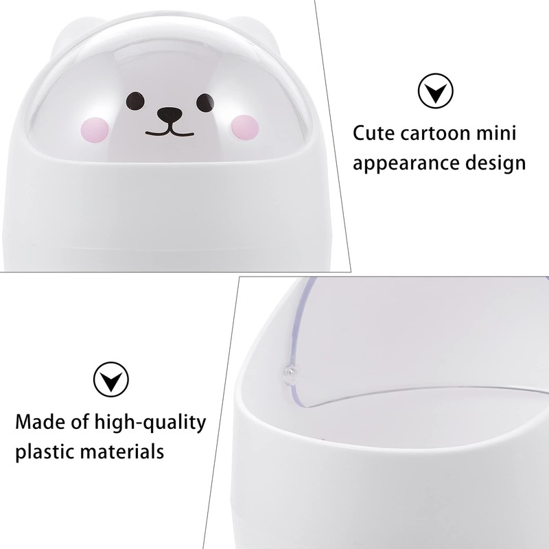 Cute Bear Shape Trash Can with Lid Mini Wastebasket Desktop Garbage Storage Bucket Waste Container Bin for Home Office Bathroom Kitchen