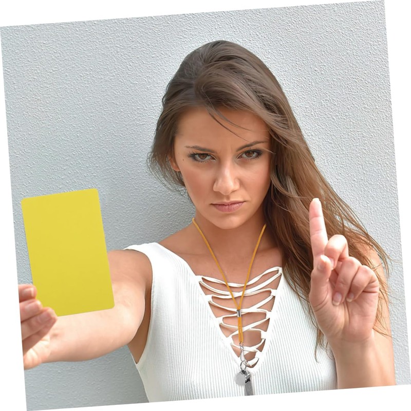 - Referee cards--the kit contains a yellow and red cards for issuing penalties, a pen and notepad for recording game events, and two metal whistles for warning,referee penalty cards