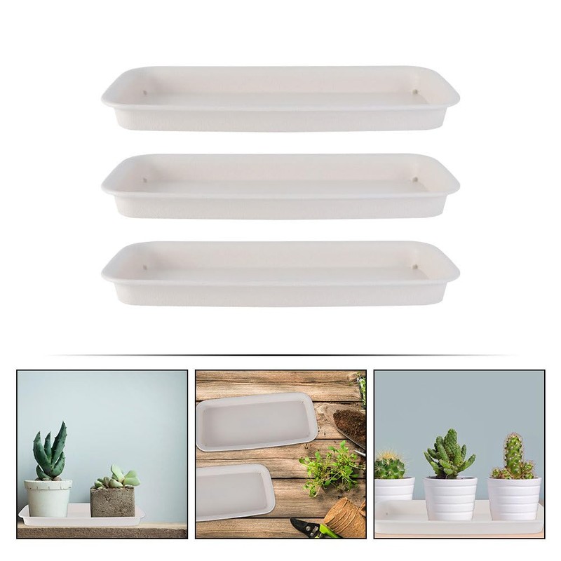 BESPORTBLE 3pcs Plastic Rectangular Plant Saucer Flower Drip Trays Planter Flower Pot Trays and Flower Pot Saucers Base Trays for Indoors Outdoors (35.5 x 14 x 3cm)