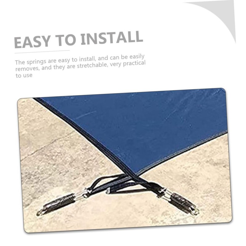 - Pool cover spring sleeves:the springs are easy to install, and can be easily removes, and they are stretchable, very practical to use,springs for pool safety covers