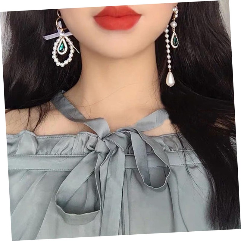 BESPORTBLE Pair Asymmetric Pearl Ribbon Earrings for Women Fine Crafted Alloy...
