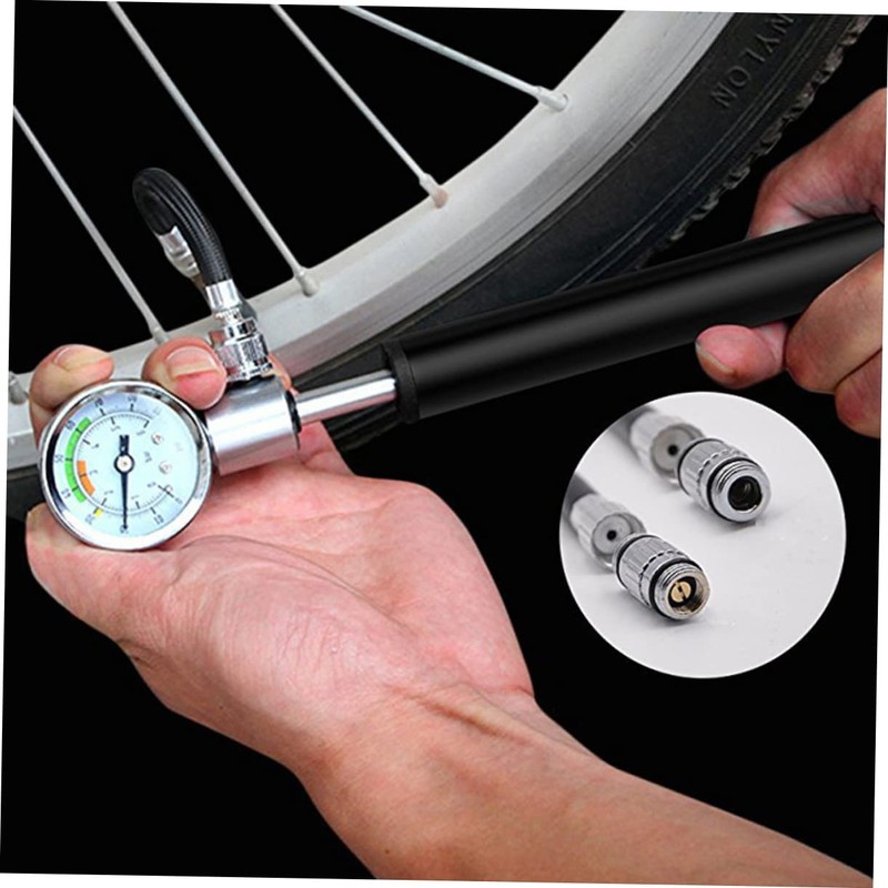 mini inflation The easy to read gauge prevents over or under tire inflation.air supply It features wide ergonomic handles rubberized for a .high pressure inflation Designed for maximum durability and effortless functionality.handheld pump The pump's iron barrel is durable, powerful, and built to endure