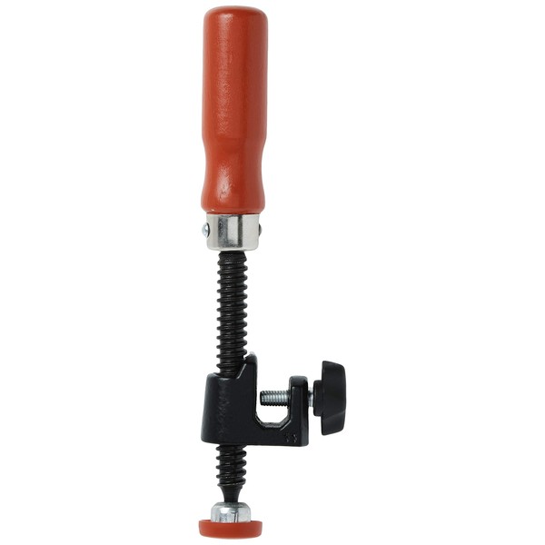 single spindle clamp attachment for edge clamping on bar clamp rails up to 1/2" thick. wood handle high strength roll formed threaded spidnle threads Locking knob for attachment to bar clamp rail included