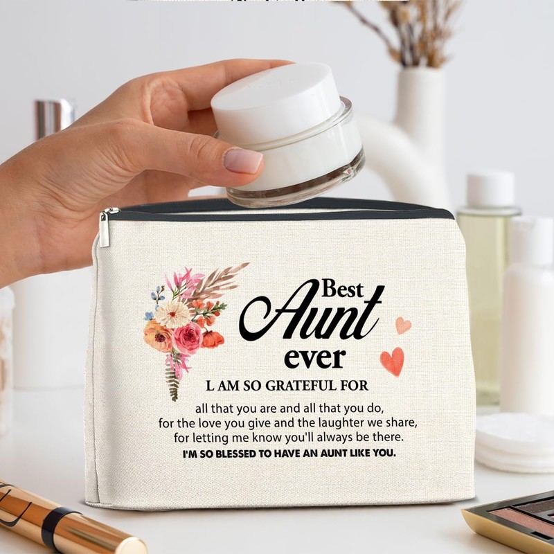 Best Aunt Gift - Aunt From Nephew Niece - Thank You for Aunt - Best Aunt Makeup Bag for Birthday Christmas Mother's Day - Best Aunt Ever Cosmetic Bag Makeup Zipper Pouch