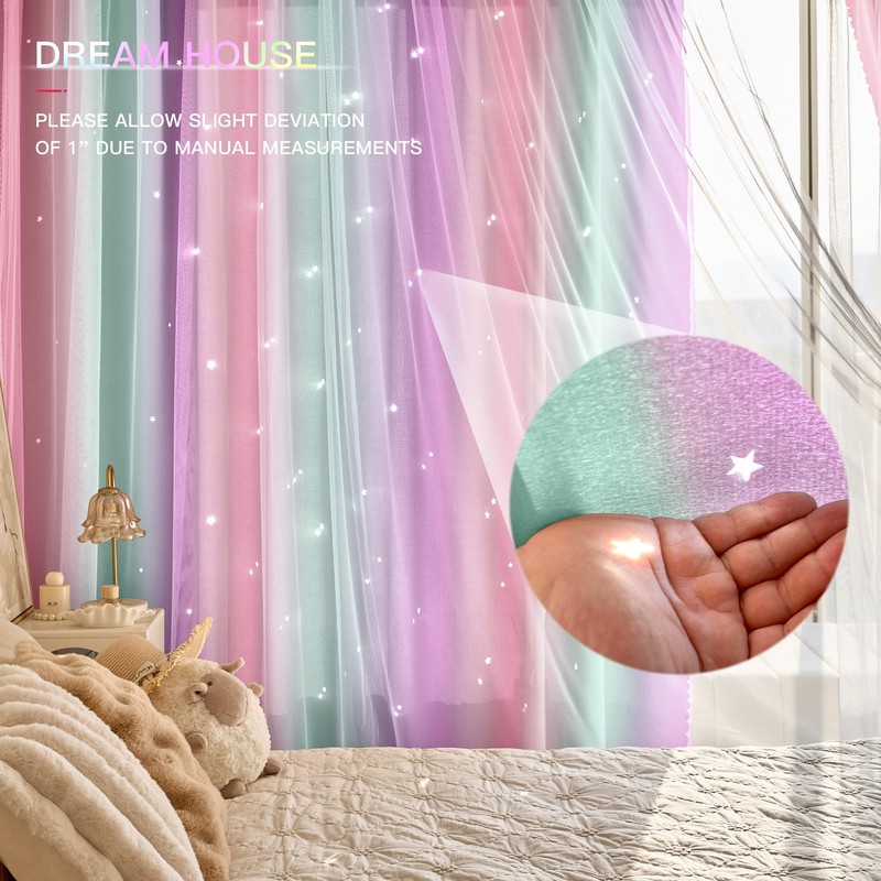 Best Baisite Curtains Blackout Curtains 2 Panels Rainbow Curtain Dream Star Princess Unicorn Decor for Kids Home Bedroom Window(PinkGreenPurple,52"x54")