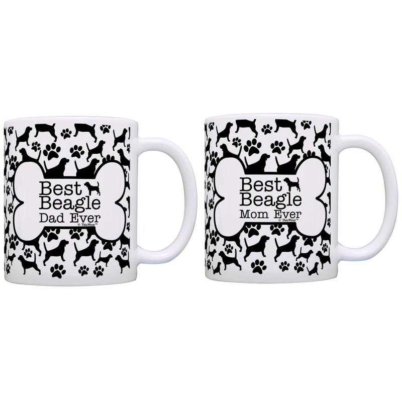 Best Beagle Mom Dad Ever Bundle Paws Dogs 2 Pack Gift Coffee Mugs Tea Cups Bone Pattern