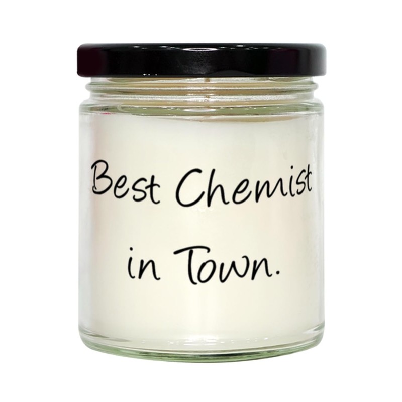 Best Chemist in Town. Scent Candle, Chemist Present from Coworkers, Funny for Men Women, Chemistry Tshirts, Mugs with Chemistry Puns, Slogan Buttons with Chemistry Jokes, A Periodic Table of Elements