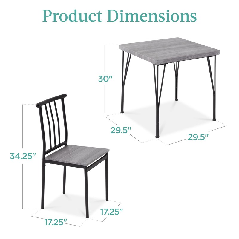 Best Choice Products 3-Piece Dining Set Modern Dining Table Set, Metal and Wood Square Dining Table for Kitchen, Dining Room, Dinette, Breakfast Nook w/ 2 Chairs - Gray