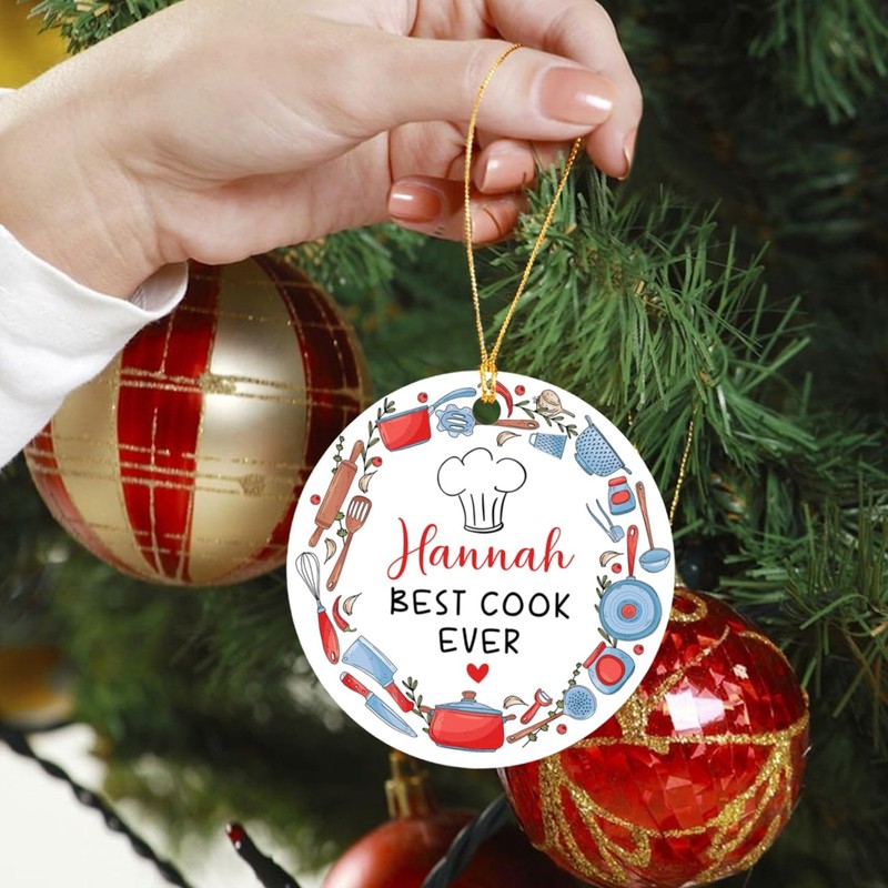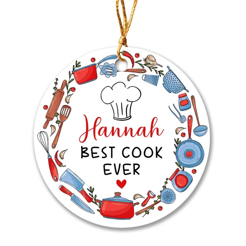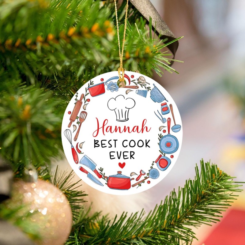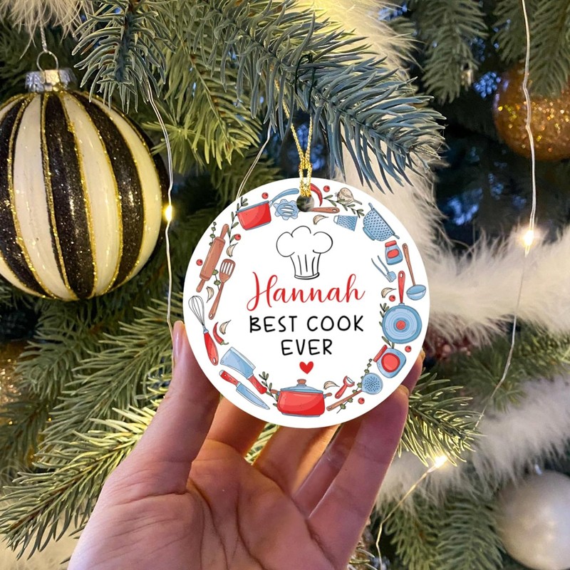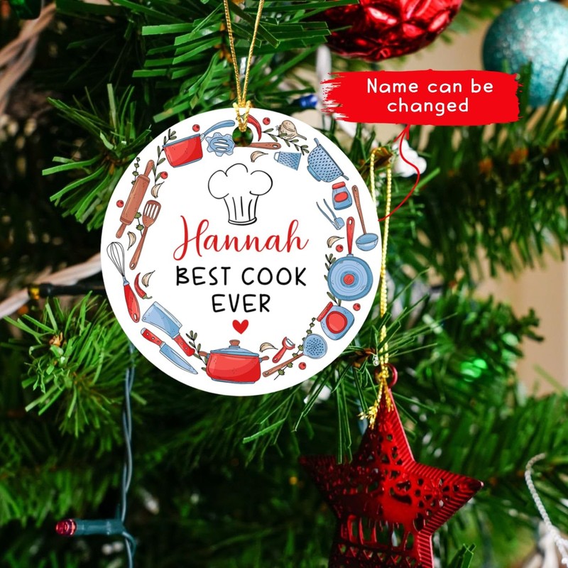 🎊 Best Cook Ever Xmas Ornament 2024, Personalized Food Cooking Christmas Ornament Gift For Bakers Cooks Chefs, Chef Hat Ornament For Xmas Tree 2024, Custom Name Best Cook Ornament Christmas 2024 🎊