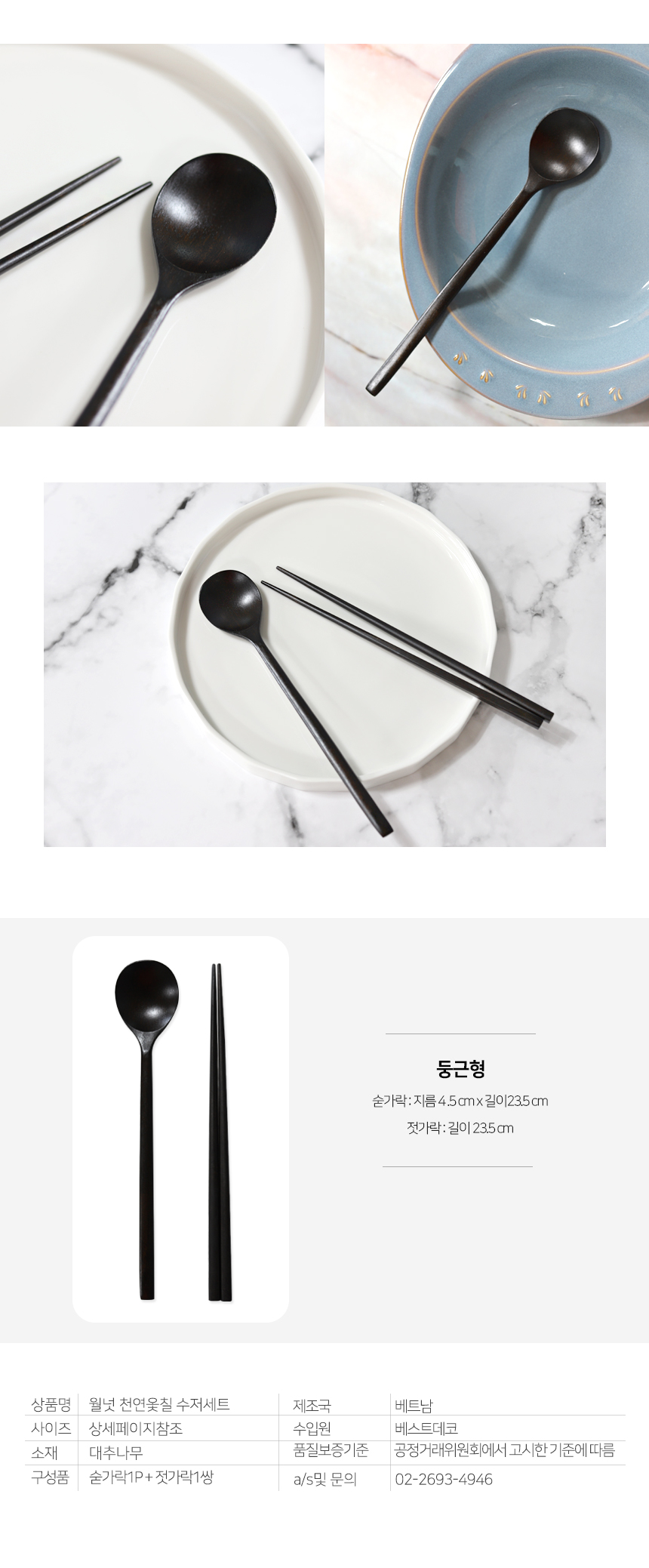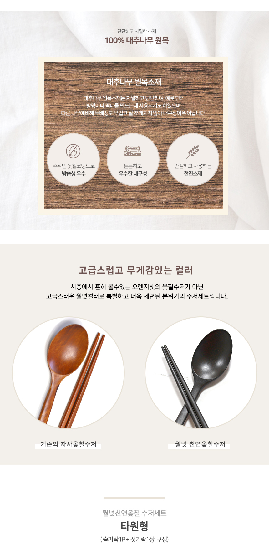 [Best Deco] Walnut natural lacquered spoon set, jujube wooden tableware, wood tableware, Walnut natural lacquered spoon set_round type / [베스트데코] 월넛 천연옻칠 수저세트 대추나무 원목식기 우드식기, 월넛천연옻칠수저세트_둥근형