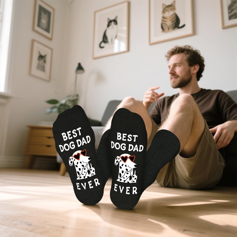 - Fun Dog-Inspired Design:Featuring playful dog graphics and bold "Best Dog Dad Ever" lettering, these socks add charm and humor to any outfit—perfect for proud dog dads.