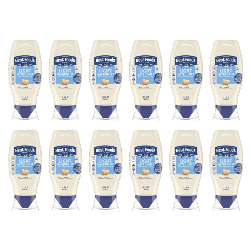 Best Foods Light Mayonnaise 12 Count Squeeze For A Creamy Condiment for Sandwiches and Simple Meals Made With Cage-Free Eggs 11.5 oz