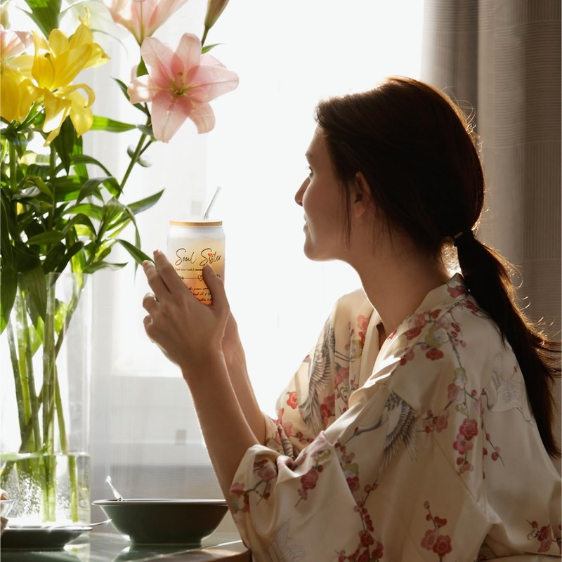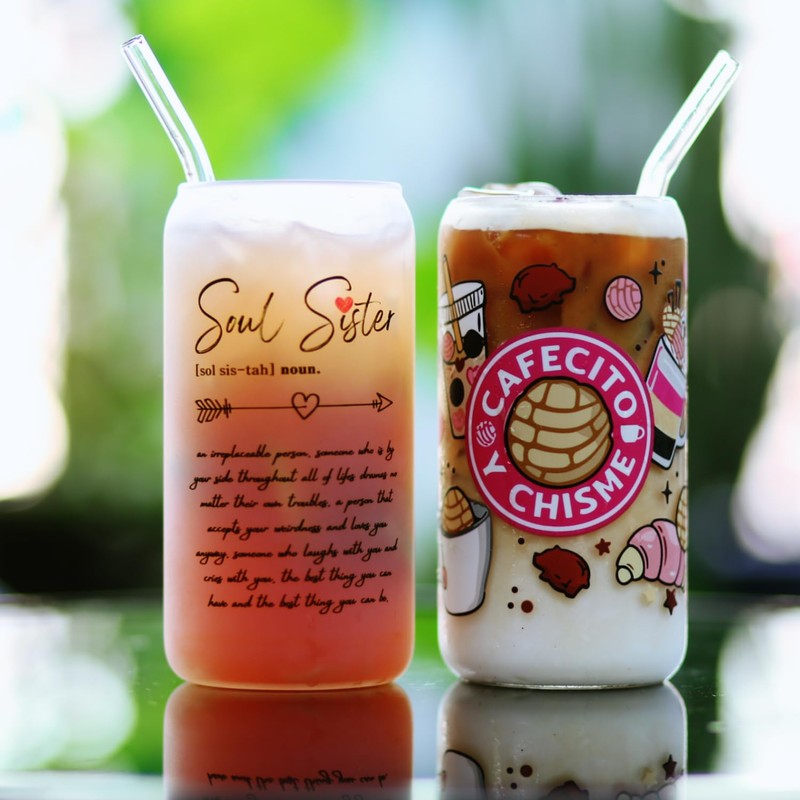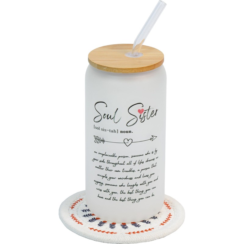 Best Friend Gifts for Women, Soul Sister 16oz Glass Cup with Bamboo Lid and Straw, Best Friend Birthday Gifts - Coffee Glass Cup Ideal for Iced Coffee, Sisters' Gifts, Christmas Gifts (Soul Sister)