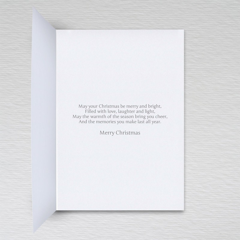 - Inside, you’ll find a lovely verse that reads: "May your Christmas be merry and bright, Filled with love, laughter, and light. May the warmth of the season bring you cheer, And the memories you make last all year."