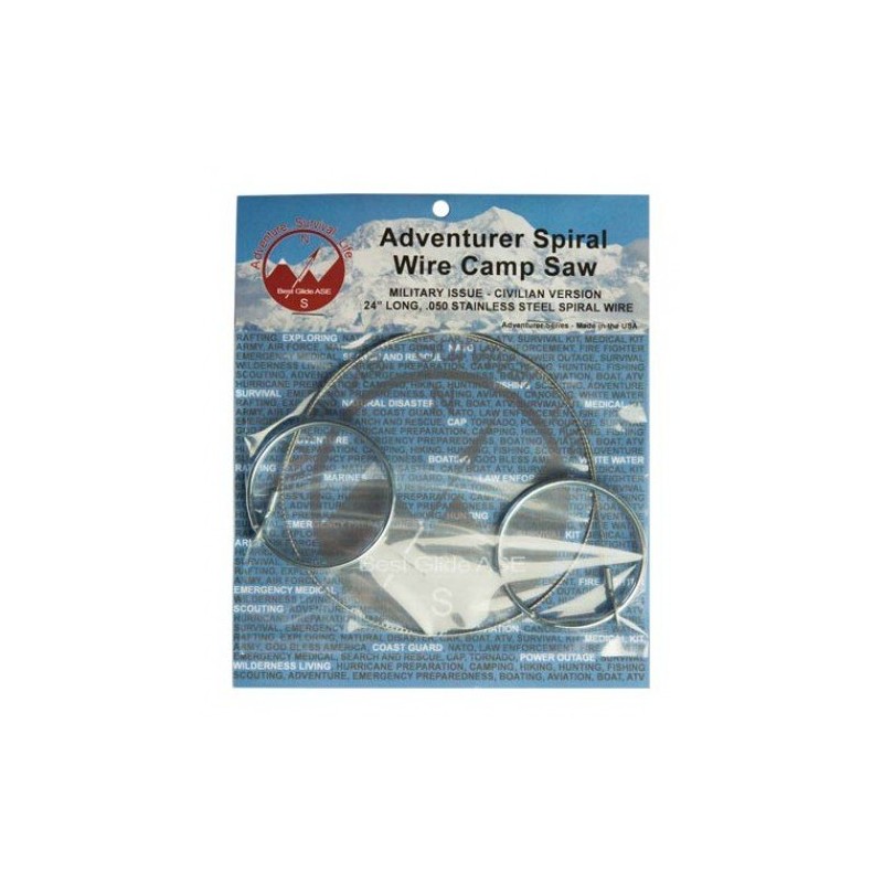 The Best Glide ASE Spiral Wire Camp Saw is more versatile and much safer than a flat blade, as the unique spiral design allows for cutting in any direction. It will cut just about anything including metals, plastics, ceramics, adhesives, rubber, wood and bone.