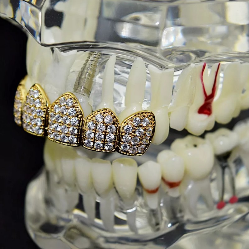 Best Grillz 18k Gold Plated Grillz CZ Simulated Iced Bling Top Teeth Hip Hop Grills