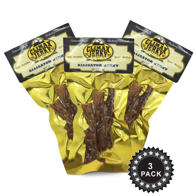 - REAL ALLIGATOR JERKY: Climax Jerky brings you the real deal in alligator jerky. Made 100% from solid strips of alligator, our product stands out from most market products. Try the tastiest jerky from real alligator. You will not buy another jerky ever again.