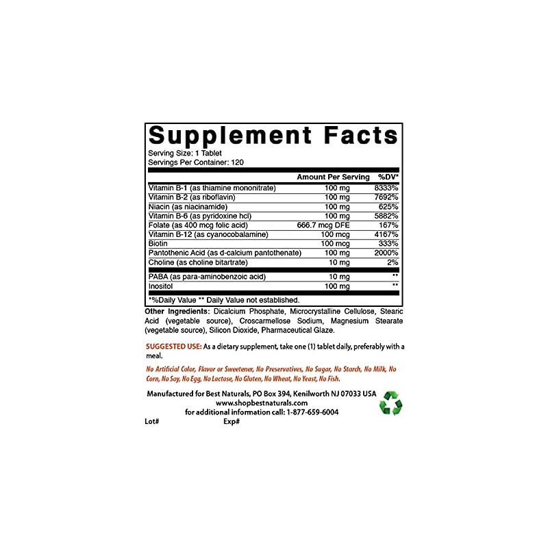 Best Naturals B-100 Complex for adults, 120 Tablets