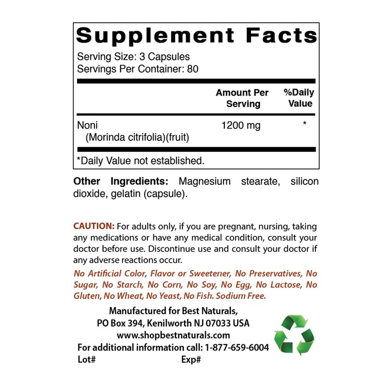 Best Naturals Best Naturals Noni 400 mg 240 Capsules (240 Count (Pack of 3))