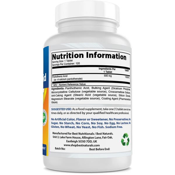 Best Naturals Pantothenic Acid 500 mg 120 Tablets