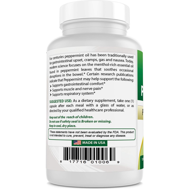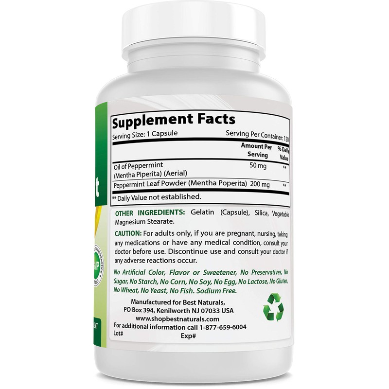 Best Naturals Peppermint Oil Bowel Soothing Dietary Supplement, 250 mg, 120 Count