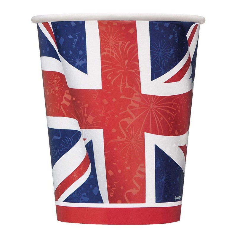 - Pack of 8 Unique Party Best of British party cups.