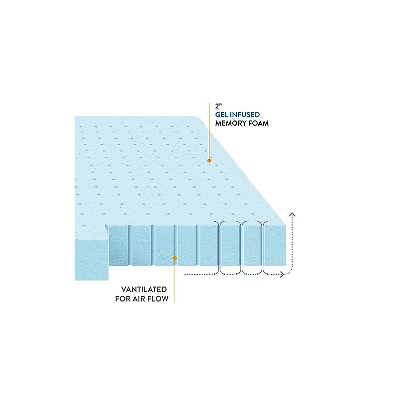 • 2-inch ventilated gel memory foam topper upgrades any mattress with both comfort and cooling benefits