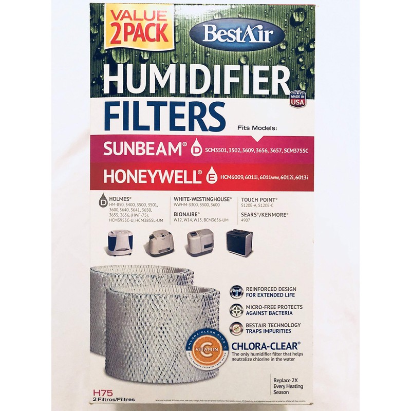 BestAir H75-2 Pack, Holmes Replacement, Paper Wick Humidifier Filter, 7.9" x 2.6" x 14"