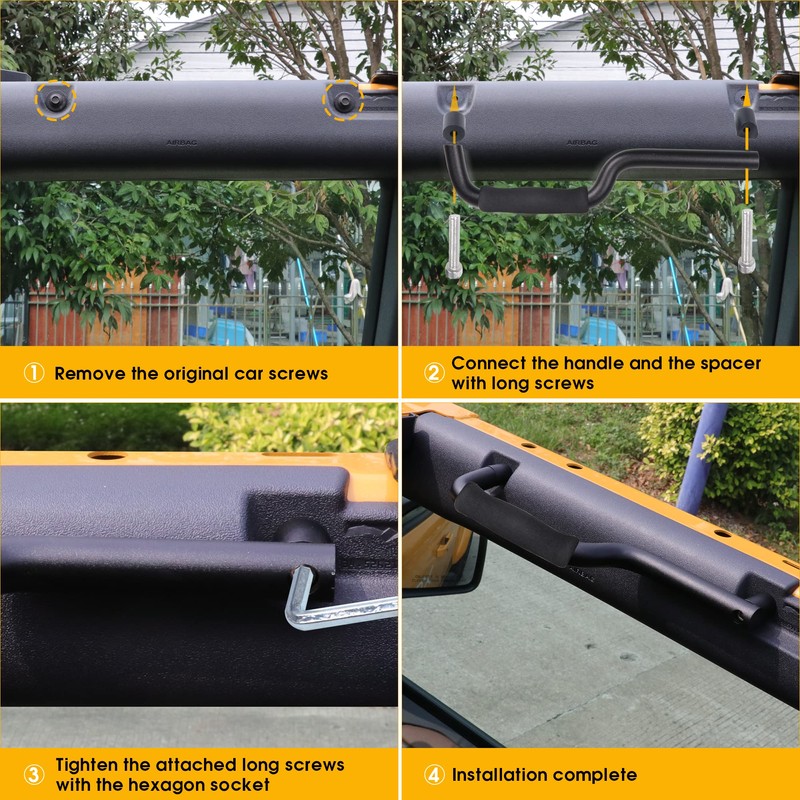 You may not be tall, you may be very fat, you may be older, or you may be very young, and it may be a little difficult to getting in and out ford bronco, You will need this handle. The grab handles make it much easier to get in and out of the ford bronco.
