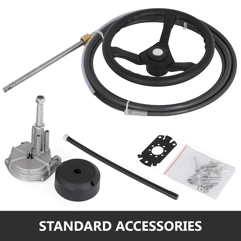 - Complete Accessories: It comes with a 13.5'' steering wheel. Rotary Helm, 15’ Steering Cable, Hardware, 90 Degree Bezel Kit, Standard 3/4'' tapered steering shaft.