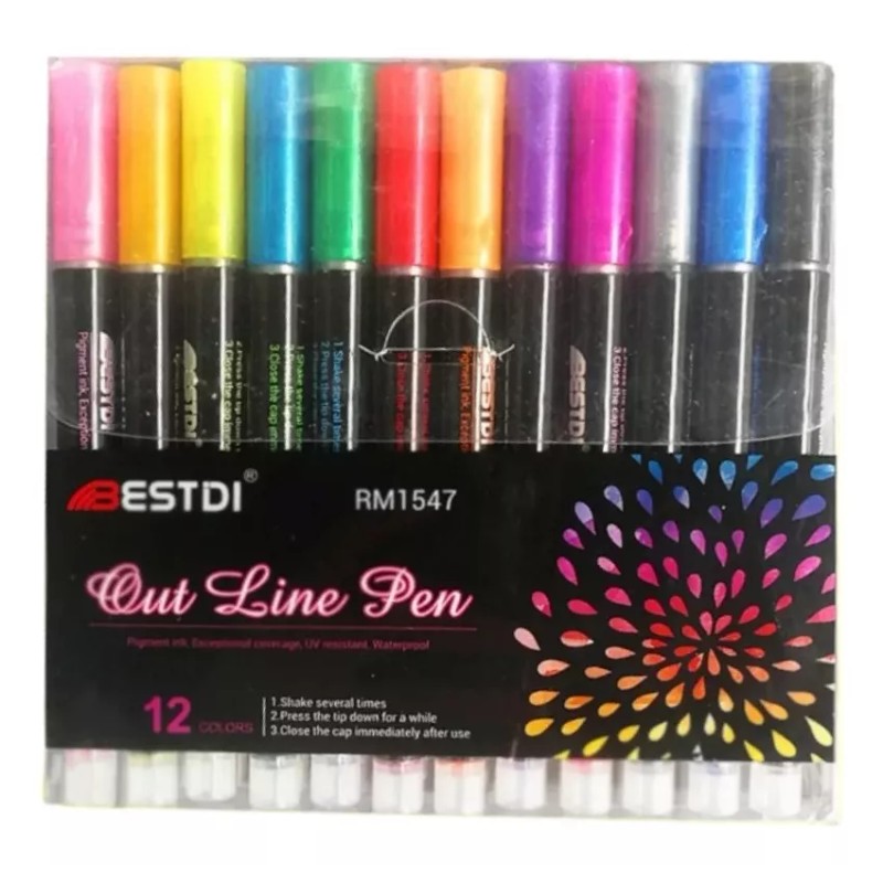 - Los bolígrafos de contorno de doble línea de 12 colores proporcionarán lo que desea.