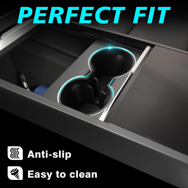 BestEvMod for 2026+ Model Y Juniper Refresh 3PCS Console Essentials Bundle Trash Can Backseat Storage Box Garbage Rear Bin Can Rear Center Console Organizer & Wireless Charger Mat & Cup Holder Insert