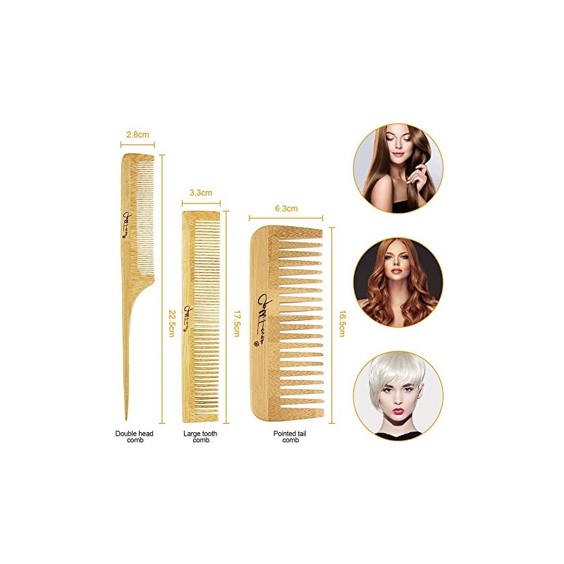 - 【Antistatic Bamboo Hair Brush 】-- 3 different types of combs can satisfy you to create a variety of hairstyles, suitable for all hair types, the double-end comb has two different densities and can handle different hairstyles, large-toothed comb can reduce hair breakage, split ends and reduce frizz, pointed tail comb can smooth and smooth hair and hair ends, easy to partition hair. High-quality bamboo materials will not produce annoying static electricity.