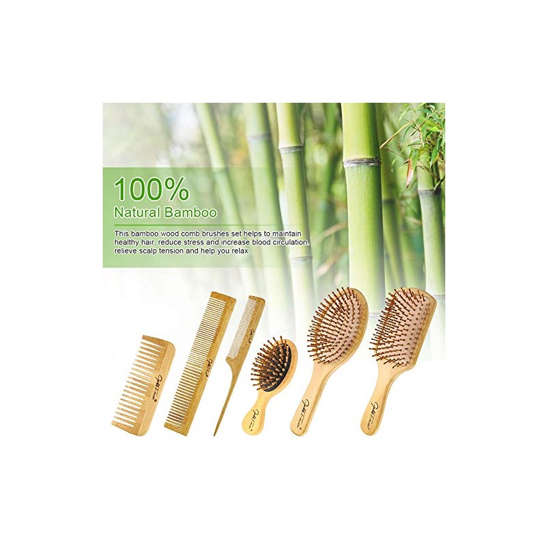 - 【100% Natural Bamboo】-- Our hair combs and massage brushes are made of natural renewable bamboo, which are practical and environmentally friendly. Whether it is bamboo bristles, they are polished and flower-free. The touch is easy to grasp, the round bead comb is not easy to break, and it is suitable for the healthy care of hair.