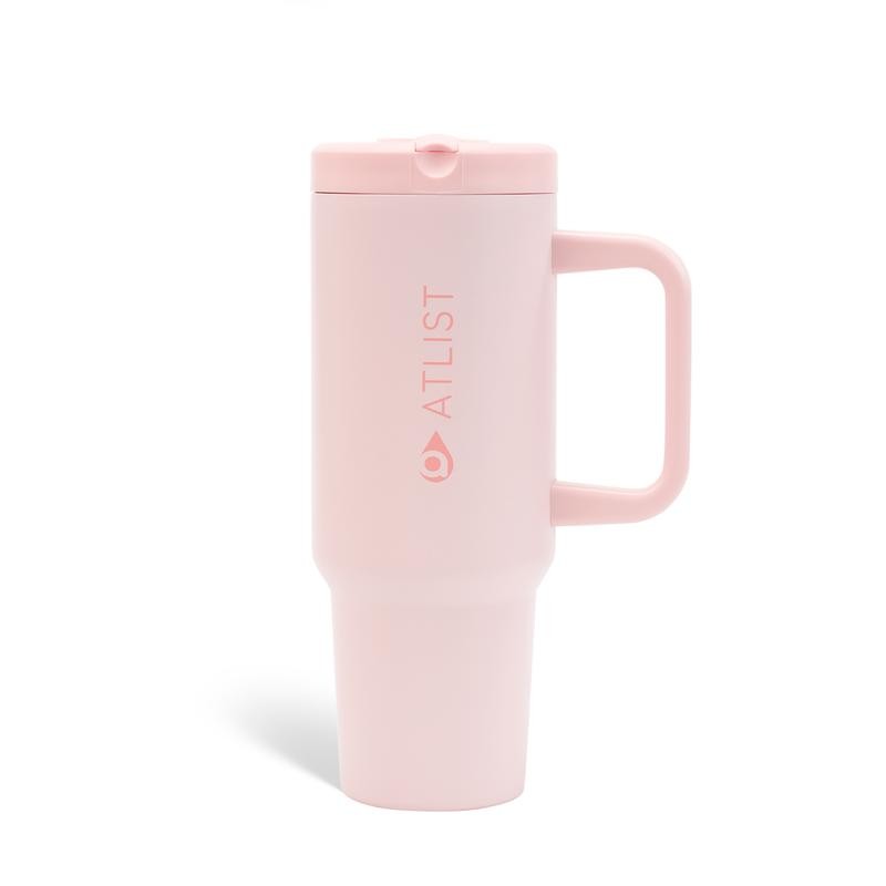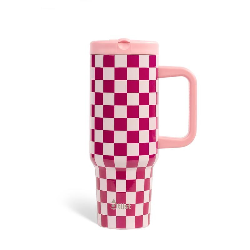 【Bestgift】100% Leakproof 40 oz Tumbler with Handle | Built-In Flip Straw | Easy-to-Twist Lid | Insulated Stainless Steel Cup:_Pink Check