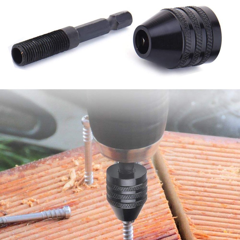 - 1/4" Hex Shank Keyless Drill Bit Chuck Adapter Converter Quick Change 0.3-8mm