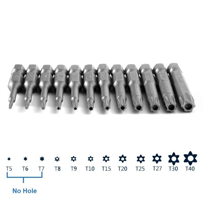 - 12 Torx Sizes: T5, T6, T7, T8, T9, T10, T15, T20, T25, T27, T30, T40; Overall length: 50mm/ 2 inch