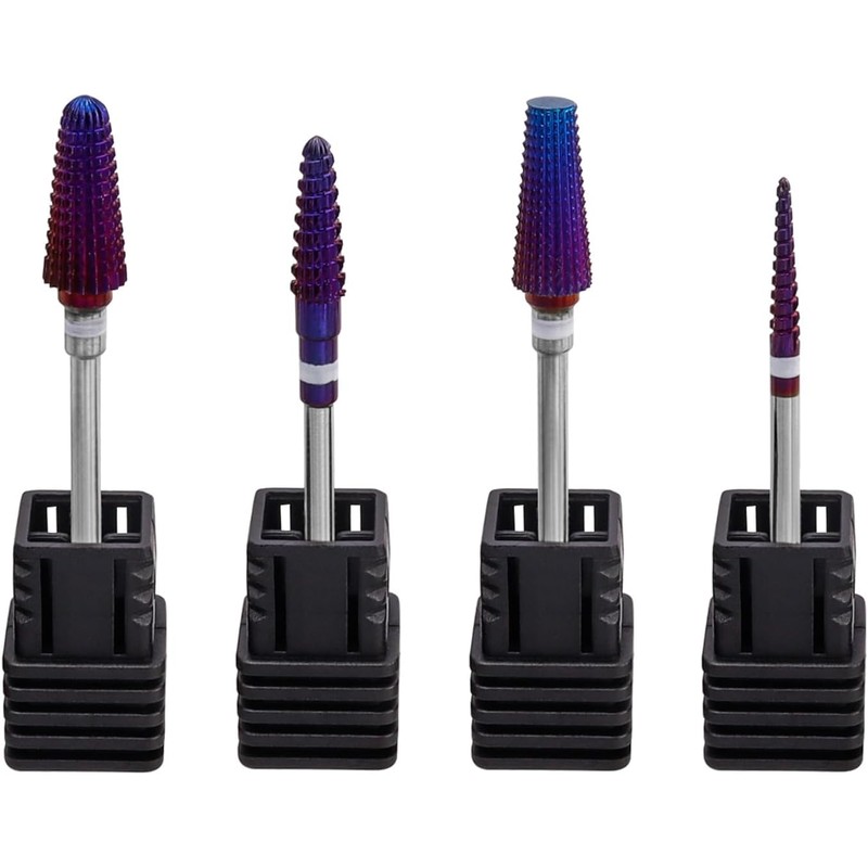 Bestgle 4個 ネイルドリルビット 3/32インチシャンク 5 in 1多機能 ネイルマシン ビット キューティクルネイルドリルビット 電動ネイルファイル用 電気除去 キューティクルデッドスキンマニキュアツール F(微研削)+M(中仕上げ)