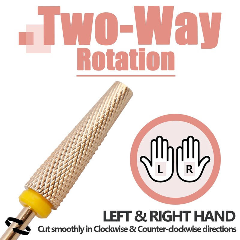 - Two-Way Rotation: Our upgraded nail drill bits are suitable for both left and right hands, allowing for versatile uses, and an essential nail care tool for salon nail techs and nail enthusiasts.