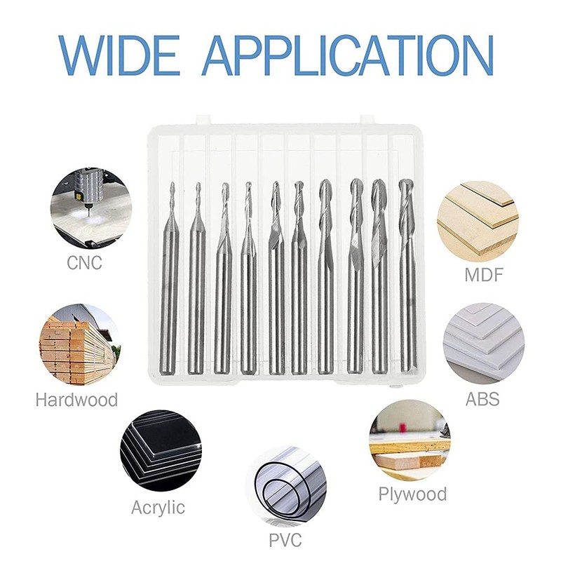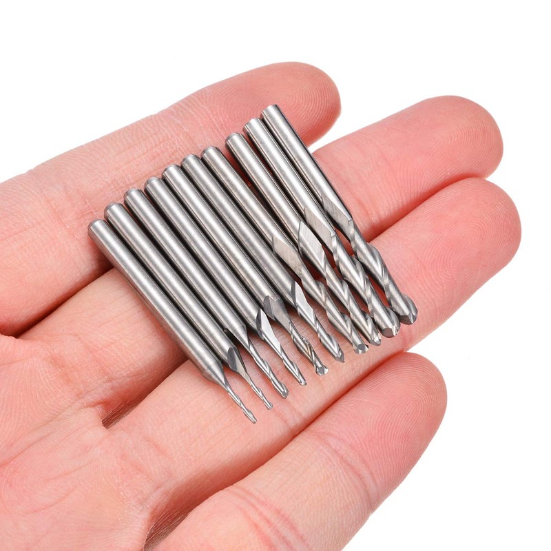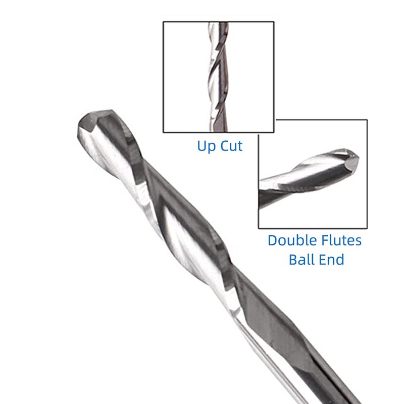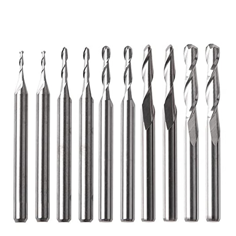 Bestgle Bestgle 10pcs Tungsten Carbide Ball Nose End Mill Cutter, 1/8" Shank 2 Flutes Straight Bit End Milling Engraving Cutter CNC Router Spiral Bits Set 1/1.5/2/2.5/3.175mm