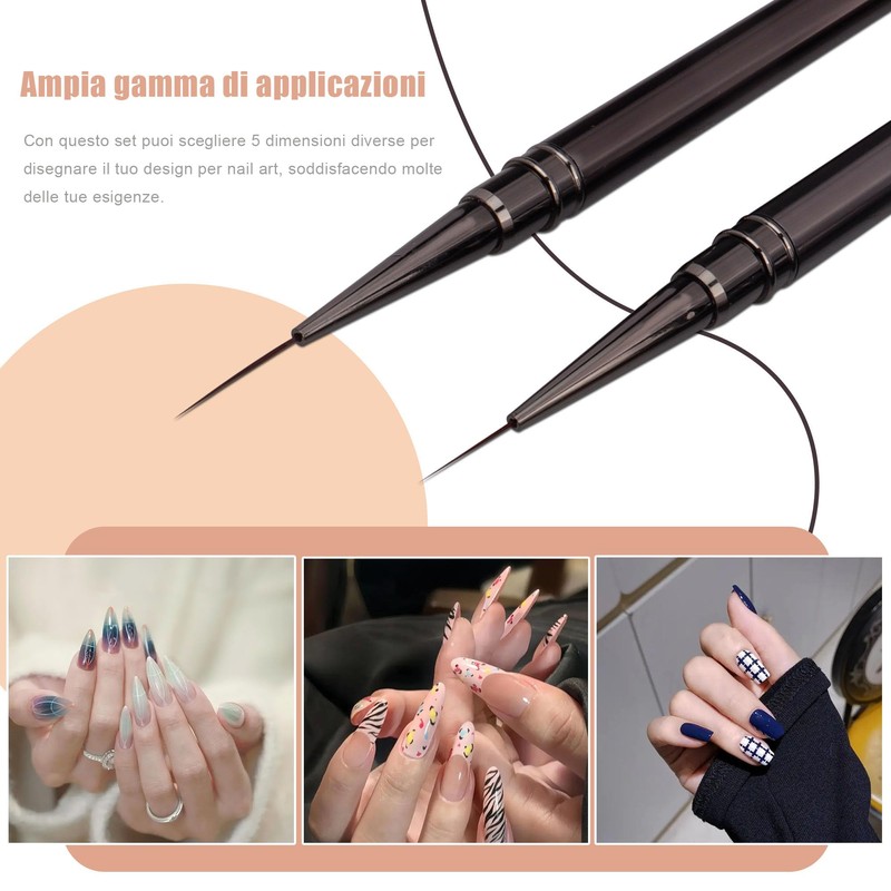 - Brush Hair Size:5/8/12/20/25mm With this set, you can choose 5 different sizes to design your own nail design that meets many of your needs.
